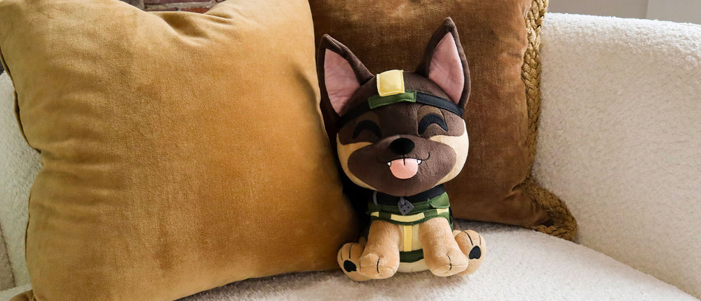 Bring the heroic Riley pup from the field to your shelf! Complete with a matching Riley in-game weapon charm to enhance your digital loadout.